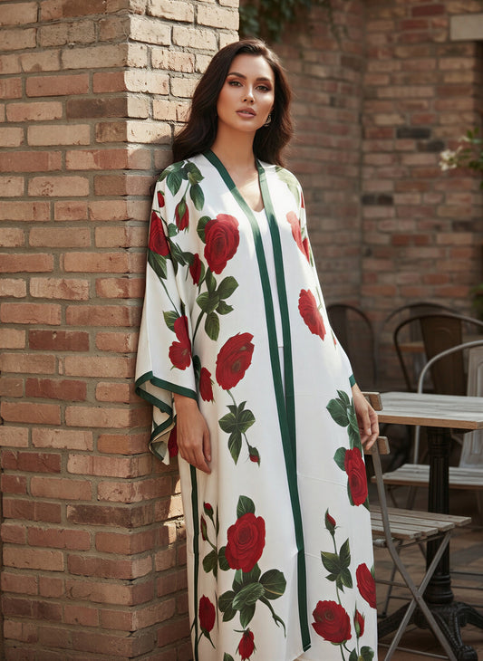 Ayla Printed Silk Kaftan Abaya