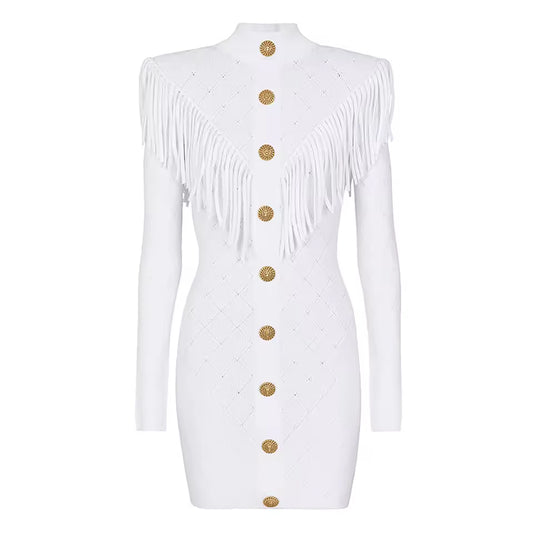 Knitted V-Neck Tassel Slim Long Sleeve Dress