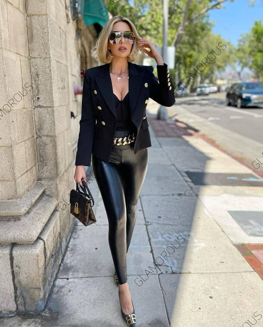 Double Breasted Black Leather Blazer