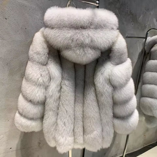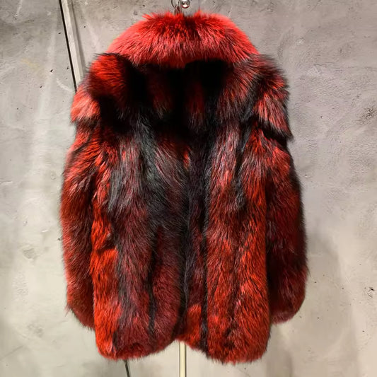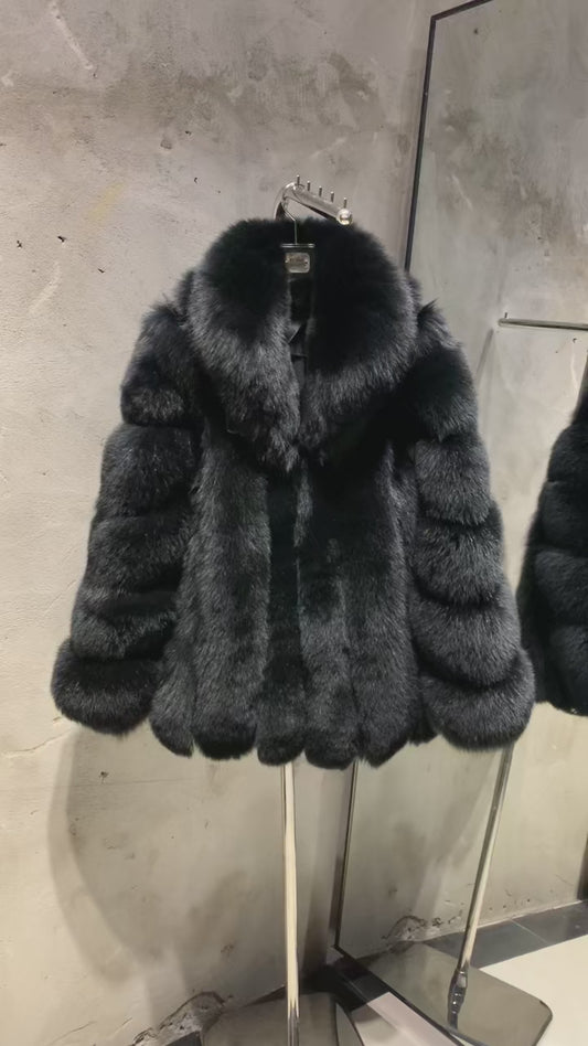 Natural Fox Fur Coat – Turn-Down Collar Classic Style