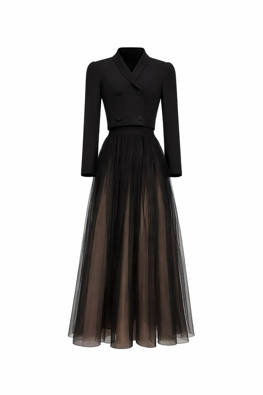 Polo Collar Knitted Mesh Dress Set