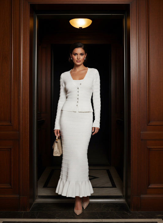 Luxury Sequin Knit Diamond Button Cardigan & Slim Fit Pencil Skirt Set