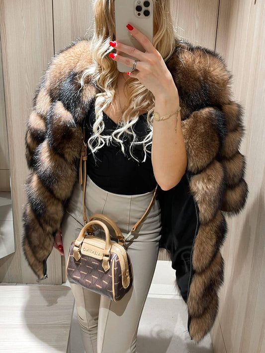 CHAQUETA DE PIEL GENUINA DE ZORRO LUMINOSA