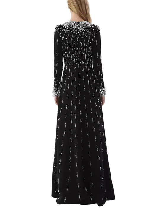 Luxurious Handmade Beaded Long Sleeve Top & Hip-Hugging Half Skirt Set