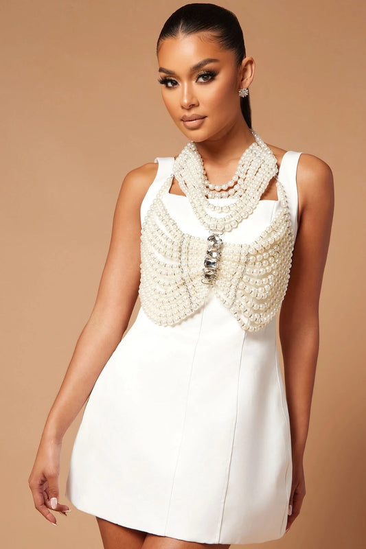 Pearl Sequin Beaded Long Sleeve Stretchy Dress