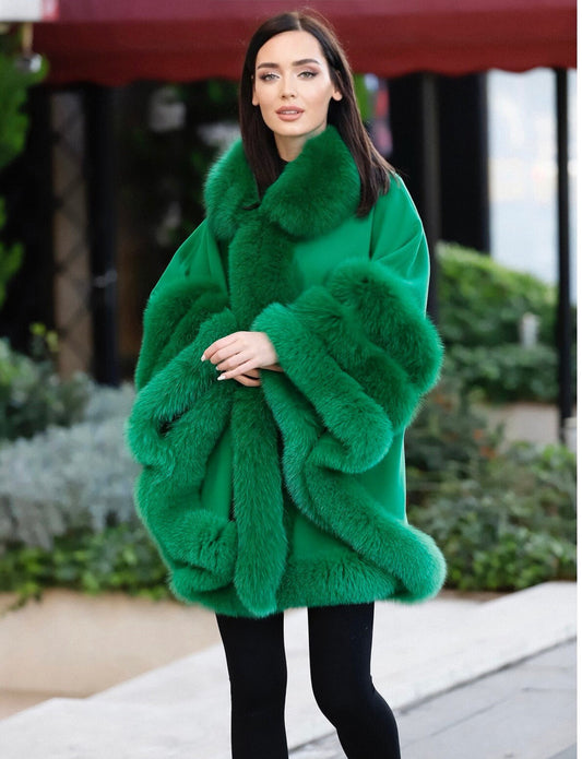 PONCHO DE CASHMERE DE PELO DE ZORRO EN VERDE
