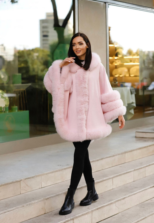 PONCHO DE CASHMERE DE PELO DE ZORRO EN ROSA
