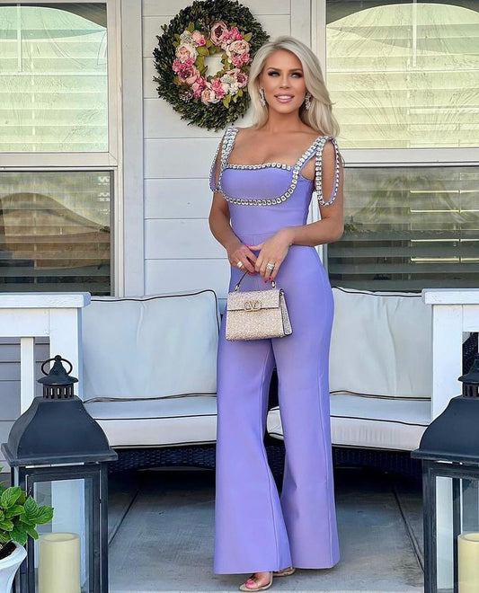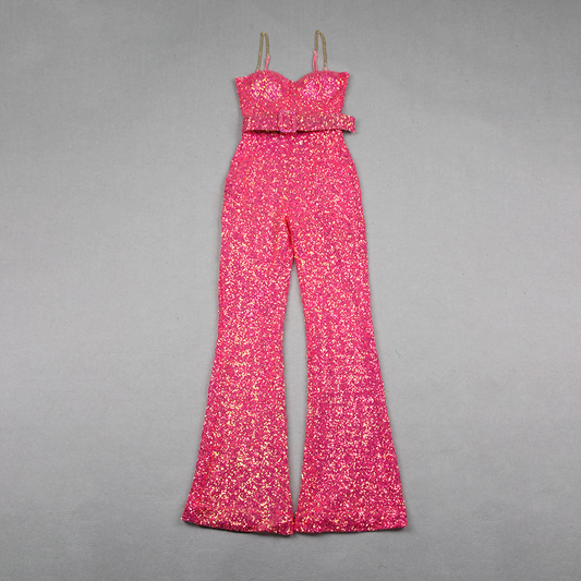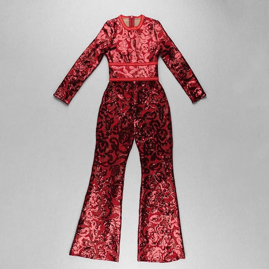 Mesh Splice Sequin Beaded Diamond Jumpsuit