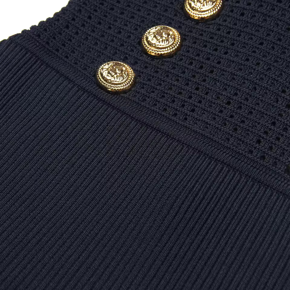 Refine your wardrobe with this elegant knit fishtail midi dress, designed to flatter your figure while keeping you comfortable all day. The luxurious elastic knit fabric creates a smooth, tailored silhouette, while the double-row button detail and short sleeves add a chic, structured finish. A graceful fishtail hem enhances movement and femininity, making it an effortless choice for both work and special occasions.