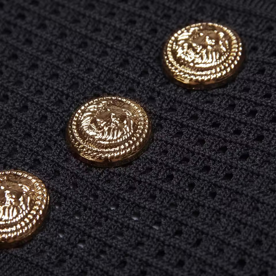 - Classic double-breasted button design for a polished look
