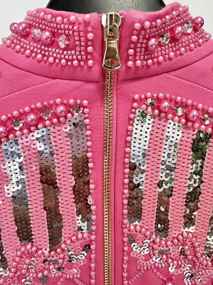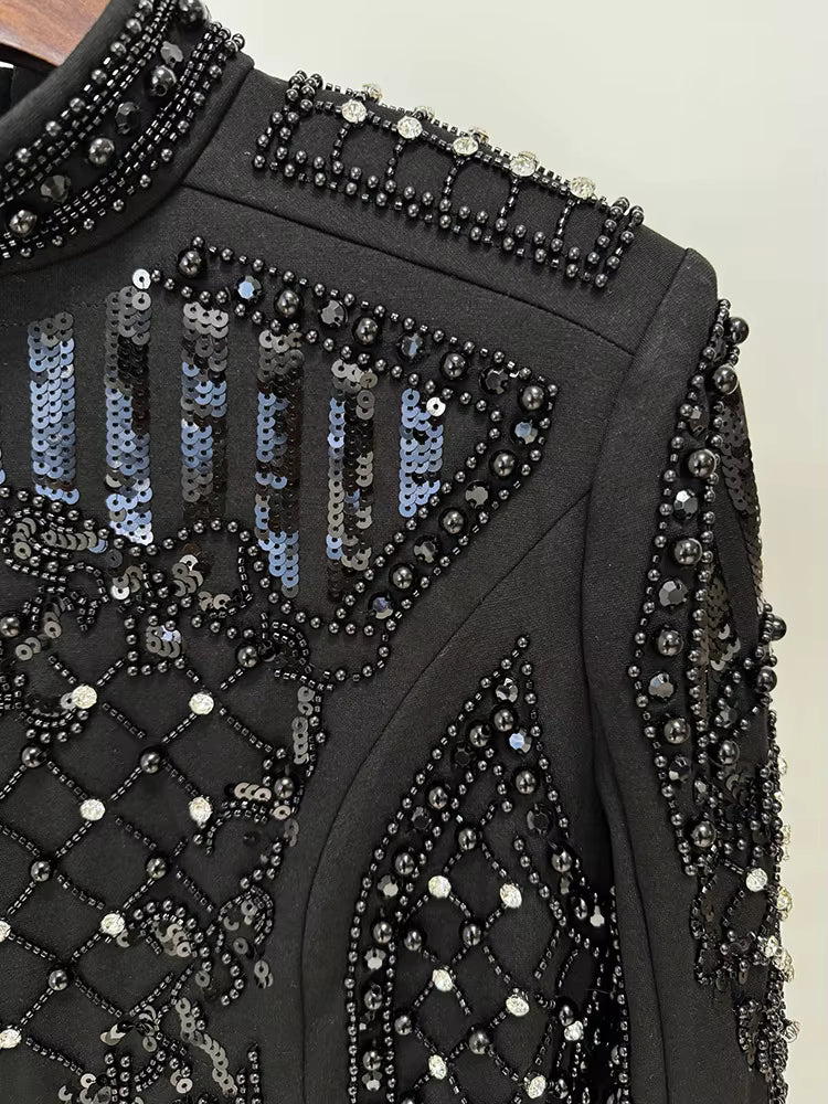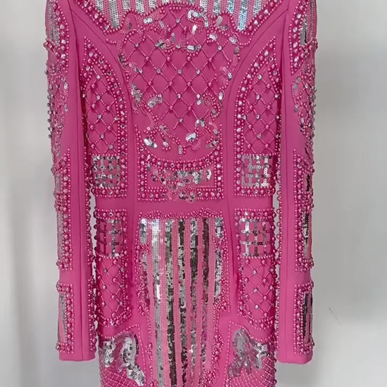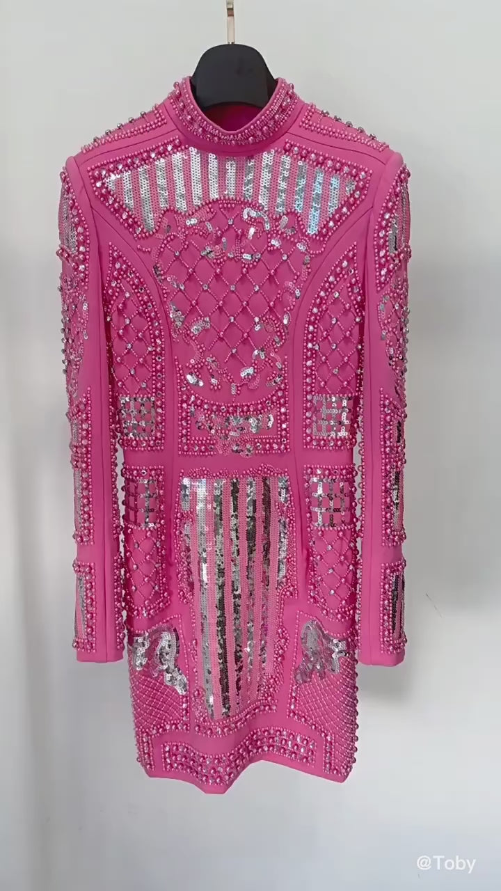 Pearl Sequin Beaded Long Sleeve Stretchy Dress