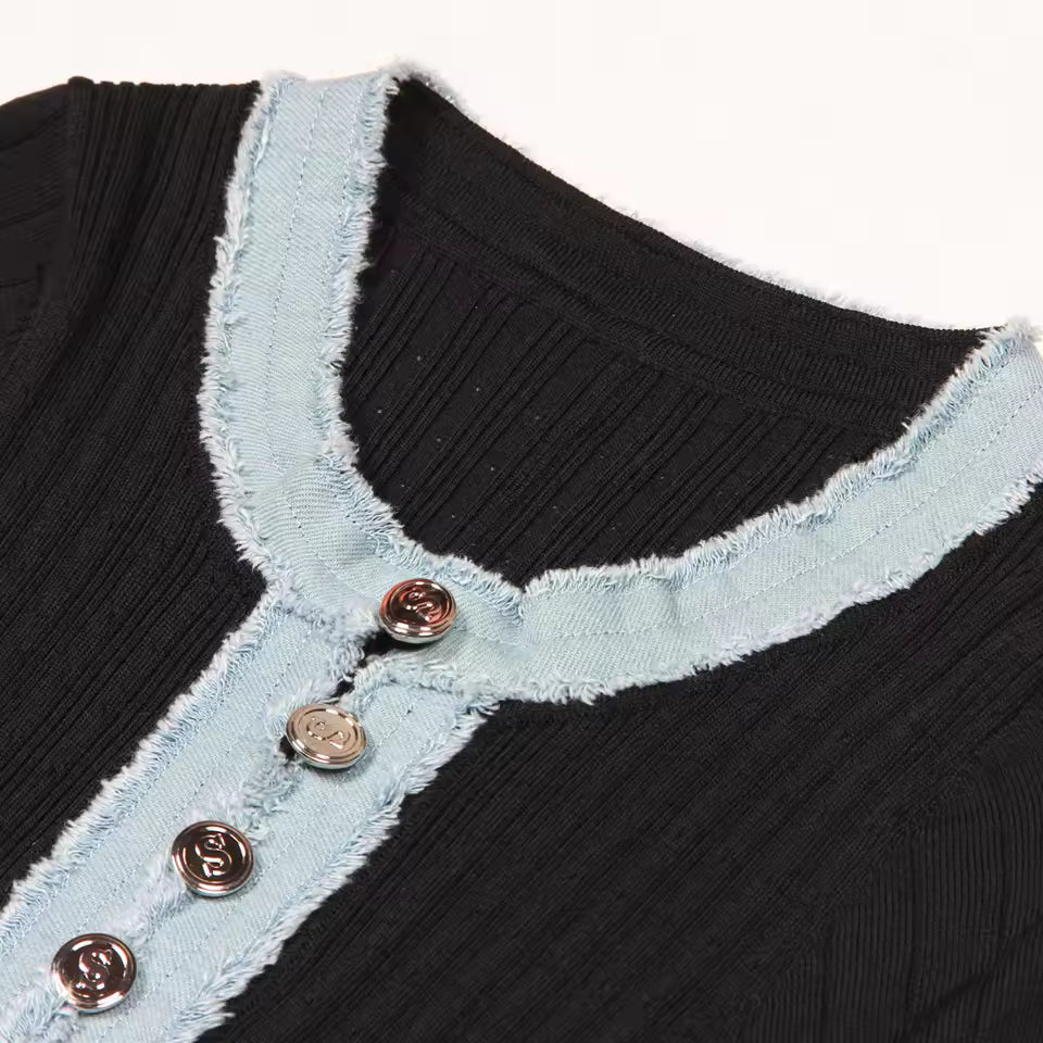 Pinned Denim Short Sleeve Knit Maxi Dress – Slim Fit Casual Chic
