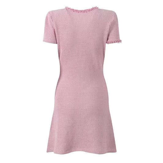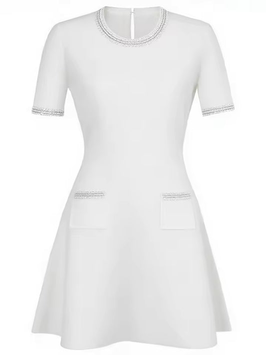 Beaded O-Neck Short Sleeve Knit A-Line Mini Dress