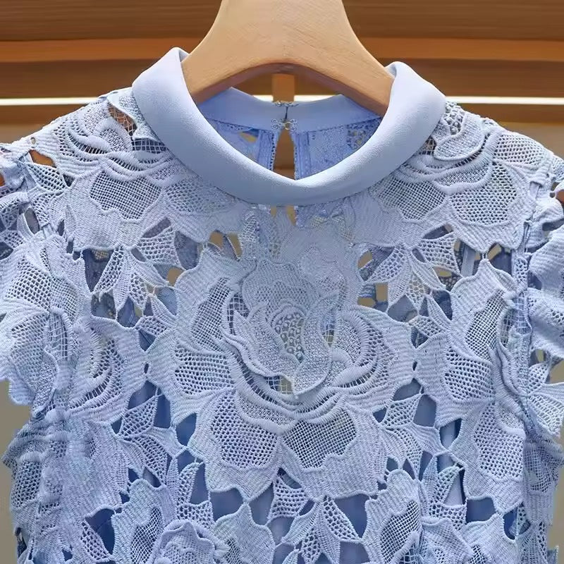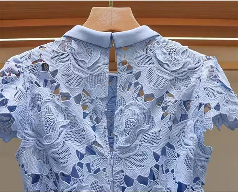 Elevate your wardrobe with our elegant blue lace maxi dress, featuring intricate floral detailing. Crafted from high-quality materials, this dress offers a perfect blend of comfort and sophistication, making it ideal for weddings, parties, or any special occasion. The flowing silhouette and delicate lace accents ensure you stand out with timeless style.