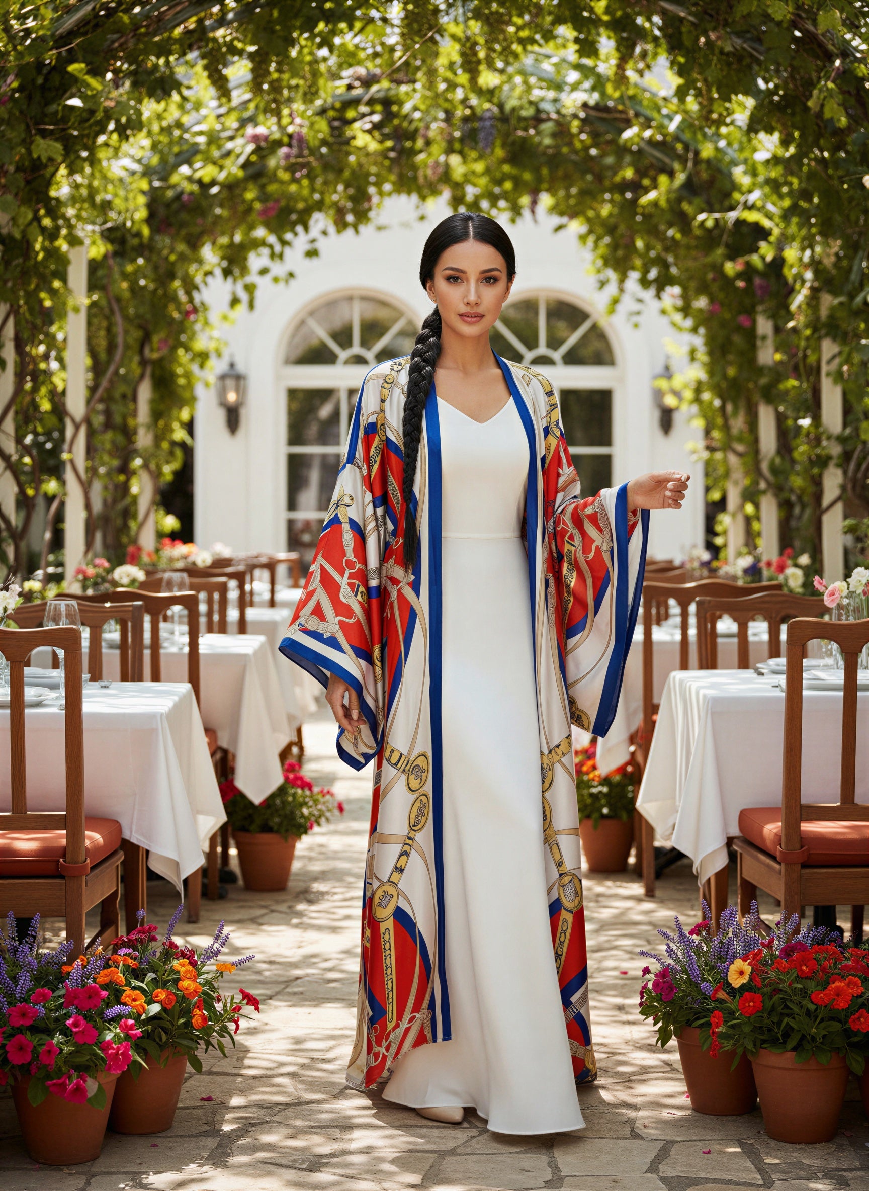 Elevate your Ramadan wardrobe with this refined floral silk abaya, designed to express timeless femininity and effortless elegance. Crafted from lightweight, fluid silk, it features a bold floral print that adds artistic depth while maintaining a graceful, modest silhouette. The flowing cut ensures comfort and elegant movement, making it ideal for iftar gatherings, Ramadan evenings, and Eid celebrations.