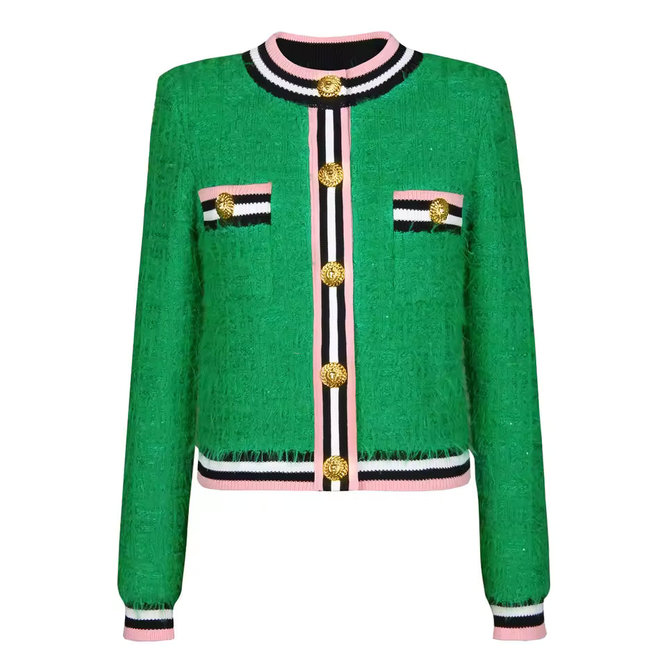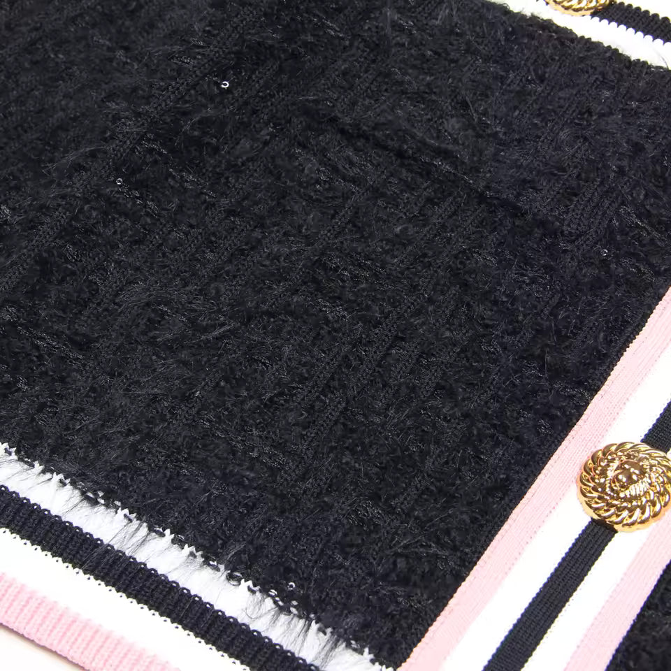 Add a touch of playful elegance to your look with this fur fringe knit vest top. Designed with color block stripes and a single-breasted front, it offers a chic blend of comfort and modern style for any occasion.