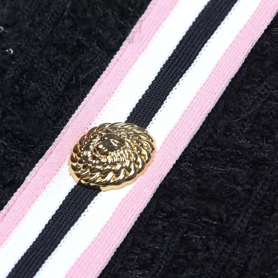 Fur Fringe Color Block Stripe Round Neck Single-Breasted Knit Vest Top
