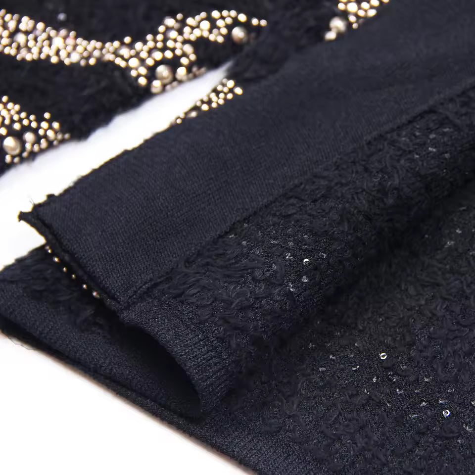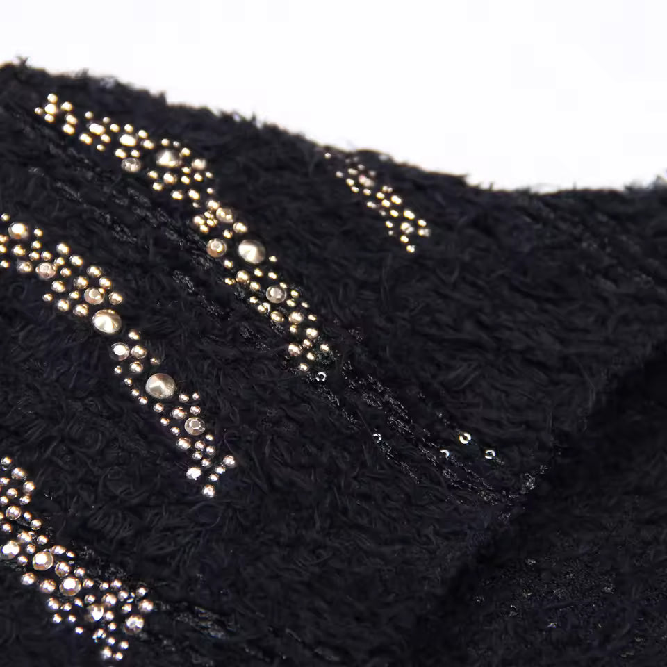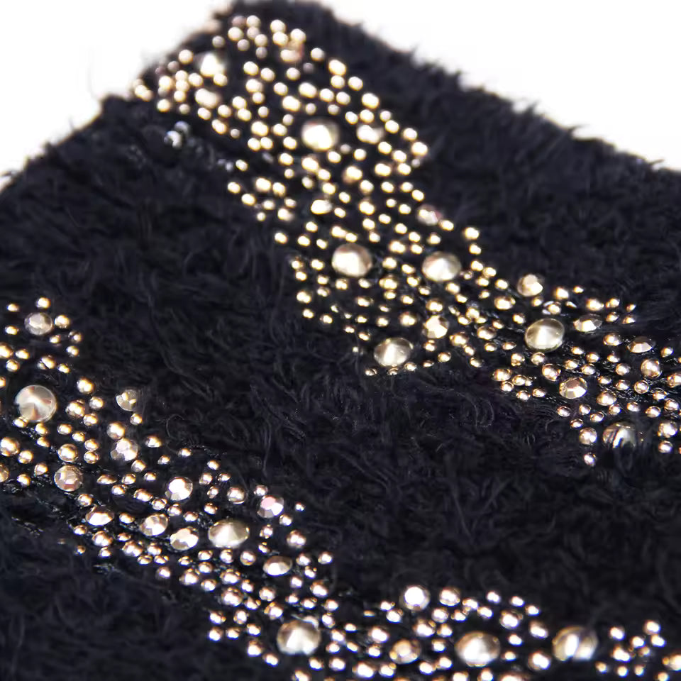 Elevate your style with this striking luxury knitted set, designed for both comfort and high-fashion appeal. Featuring a bold zebra pattern with shimmering diamond accents, this two-piece ensemble pairs a soft, elastic knit top with a perfectly coordinated skirt for a sophisticated yet playful look.