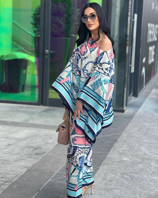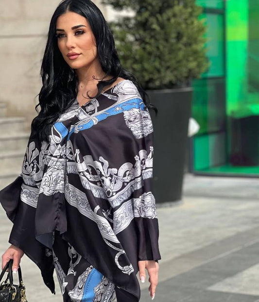 Slim Fit Appliqué Patchwork Two-Piece Pant Set with Lapel Top