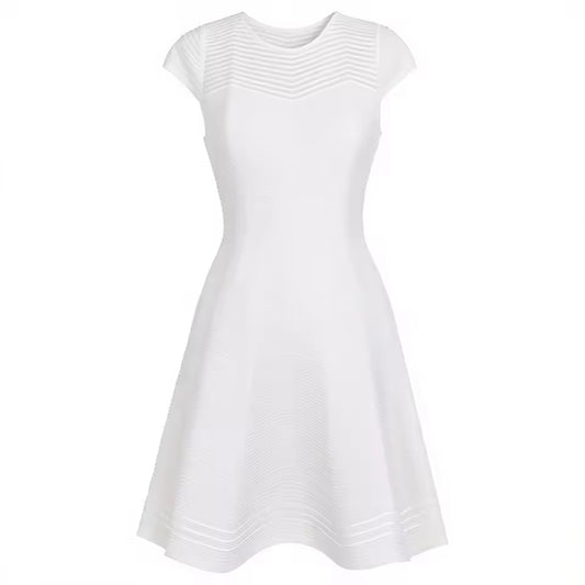 Slim Fit Mesh Hollow Out Short Sleeve Elastic Knit Banquet Dress
