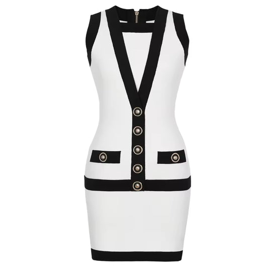 Sleeveless Button Front Slim Fit Short Knit Dress