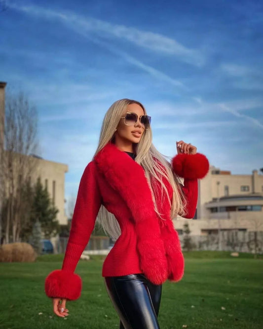 CARDIGAN CORTO IN CASHMERE/MAGLIA DI VOLPE ROSSO