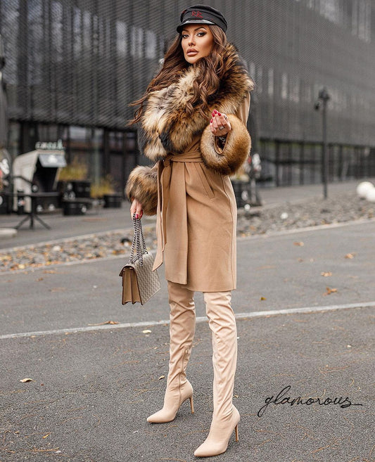 CAPPOTTO IN CASHMERE CON PELLICCIA DI RACONE