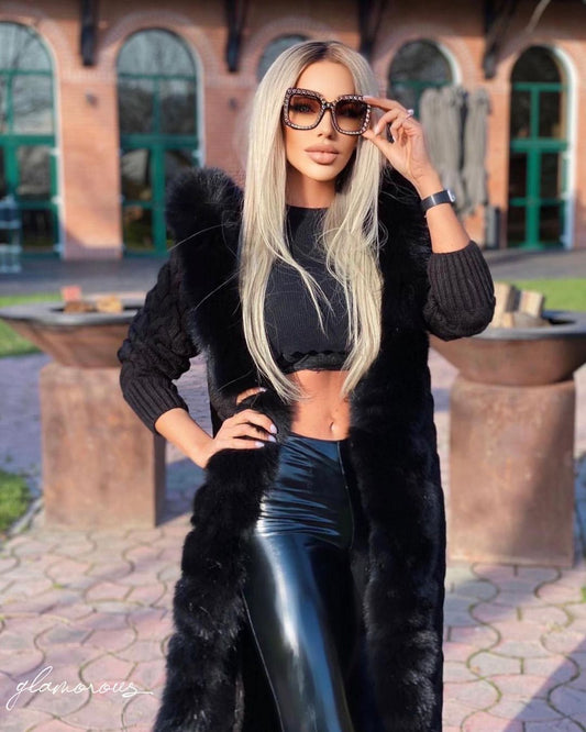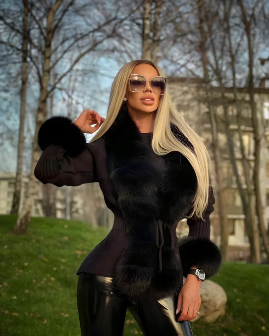 CARDIGAN IN CASHMERE/MAGLIA IN PELLICCIA DI VOLPE NERA