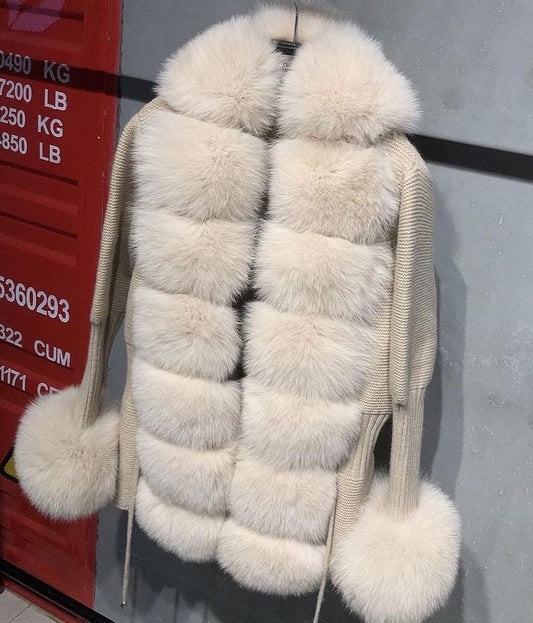 CARDIGAN IN CASHMERE/MAGLIA DI VOLPE BIANCO