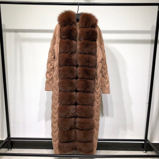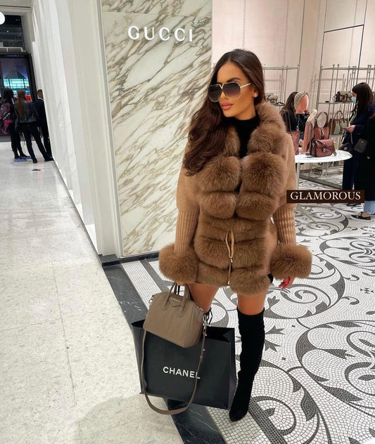 CARDIGAN IN CASHMERE/MAGLIA IN PELLICCIA DI VOLPE MARRONE