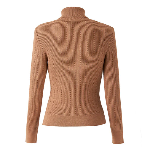 Top Sia in lana a maniche lunghe in cammello