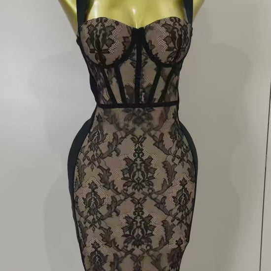 Turn heads at every celebration with this Camisole Lace Backless Evening Party Dress. Blending romantic lace details with a sleek silhouette, this original design creates effortless allure and timeless elegance.