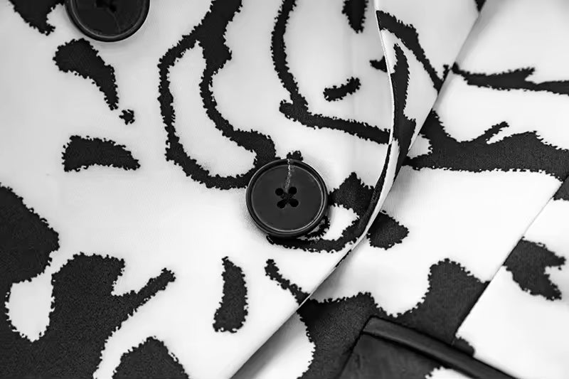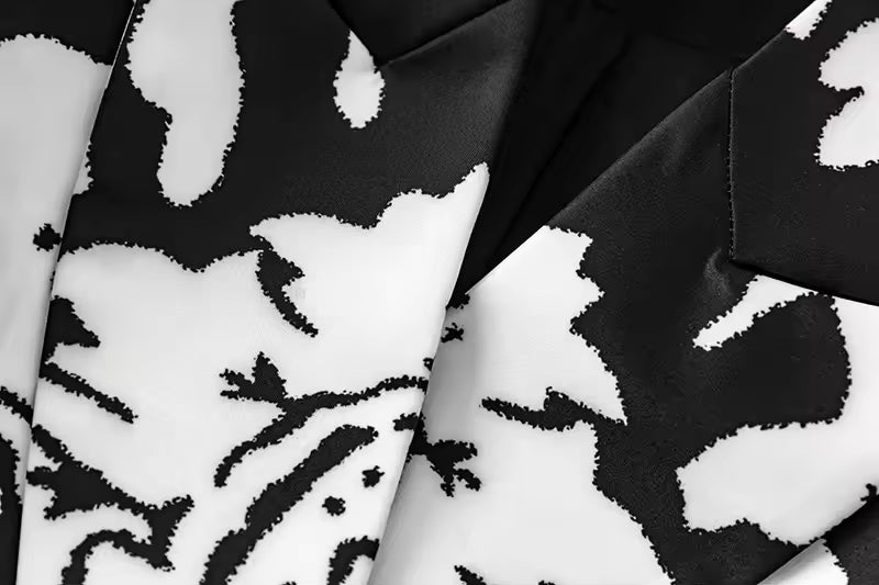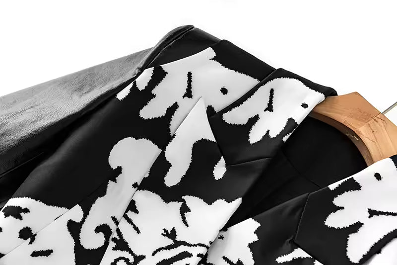 Elevate your wardrobe with the PU Patchwork Floral Slim Blazer, a striking blend of modern design and classic tailoring. This versatile piece transitions seamlessly from professional settings to evening events.