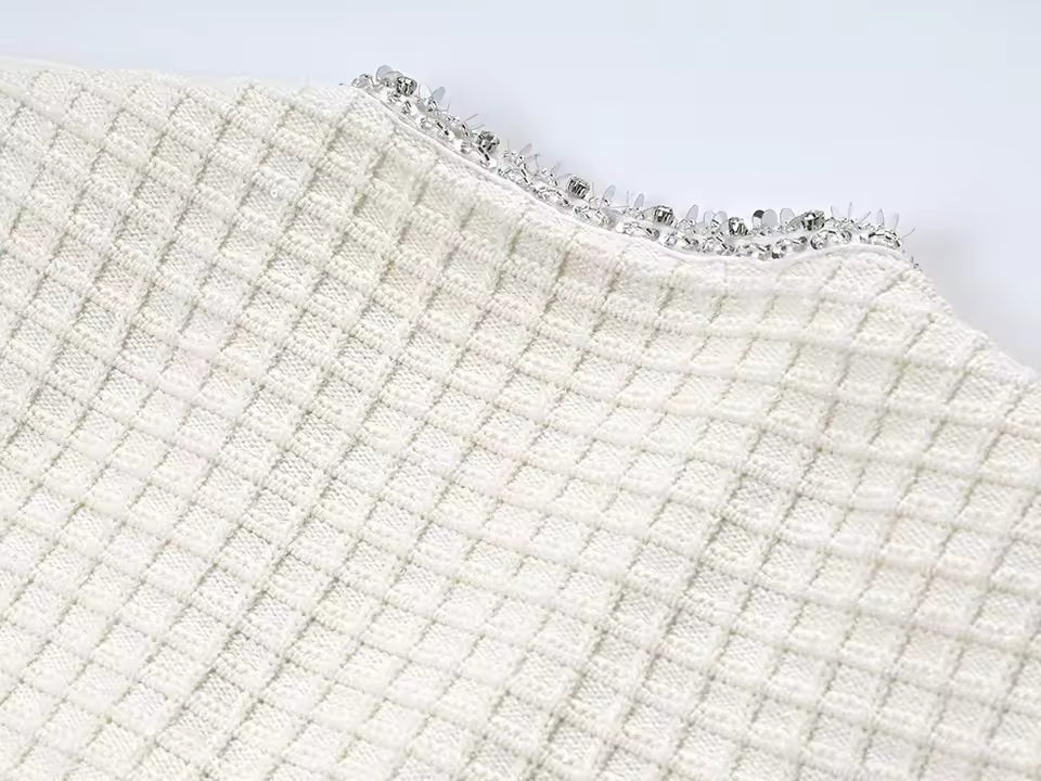 Add a touch of sparkle to your wardrobe with this rhinestone-accented knit cardigan. Designed with a flattering V-neckline and classic single-breasted closure, it offers a perfect balance of elegance and everyday comfort—ideal for work, dinner dates, or casual outings.