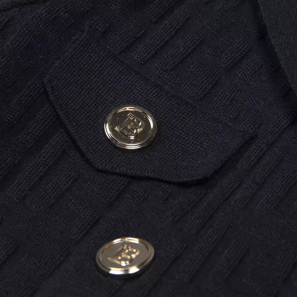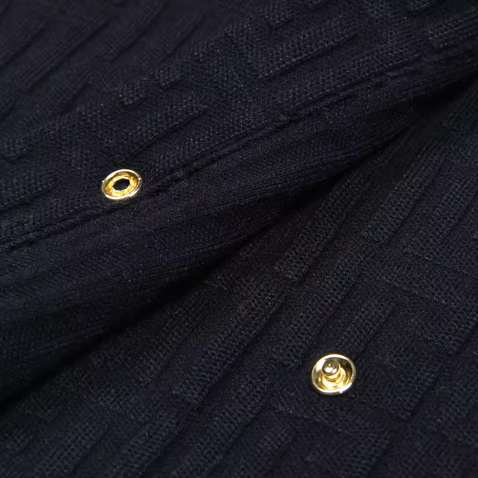 Showcase effortless sophistication with this solid color textured knitted dress. Designed with a lapel neckline and a double-breasted button front, it combines polished tailoring with the cozy feel of premium knitwear.