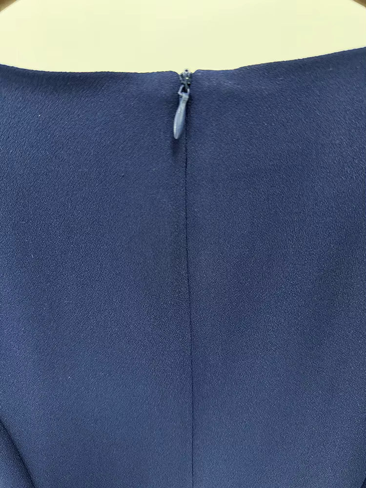 Available in rich navy blue and soft blush, this dress ensures you shine with sophistication at your next special occasion.