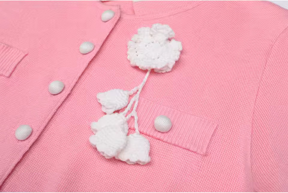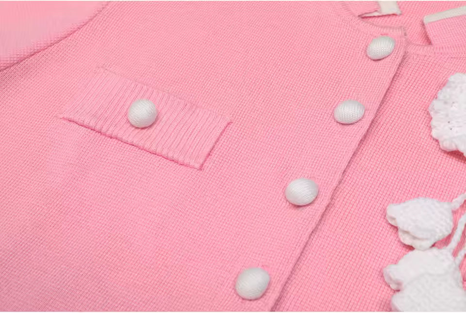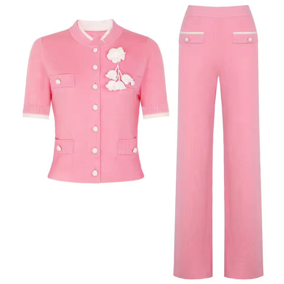 Refresh your look with this chic two-piece knit set combining a colorblock vest with delicate flower accents and perfectly tailored solid pants. The classic O-neck and short sleeves create a polished yet relaxed vibe, ideal for workdays, brunch dates, or stylish leisure.
