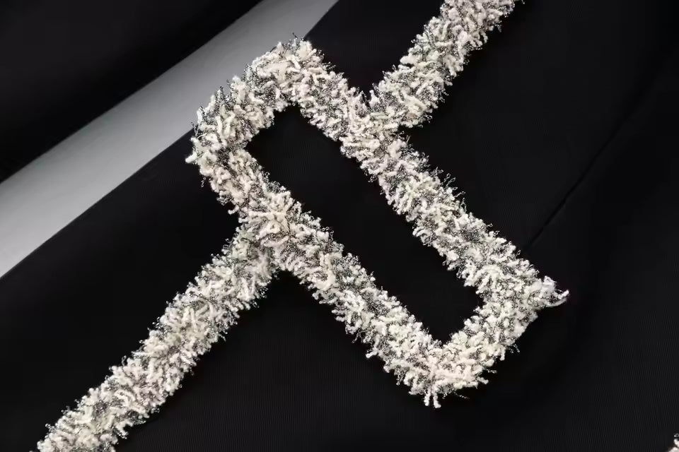 Make a bold statement with this elegant velvet blazer and skirt set, designed for sophistication and modern appeal in any setting.