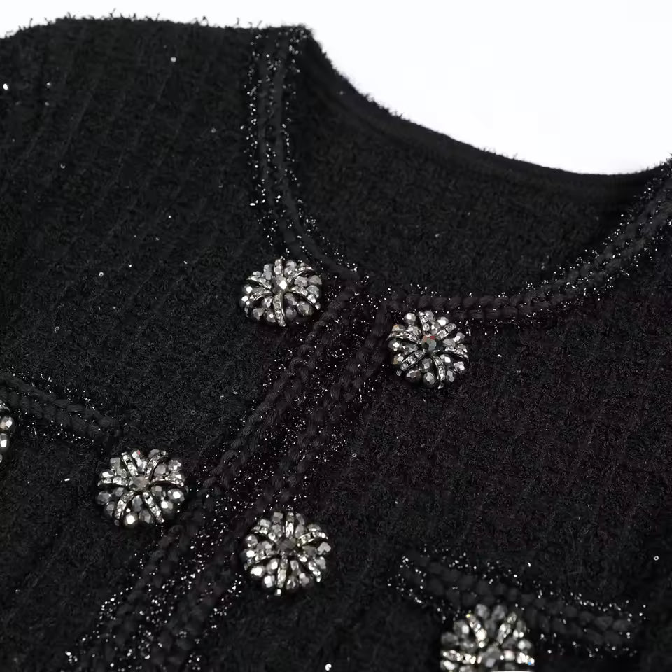 - Sparkling rhinestone buttons add a luxurious touch