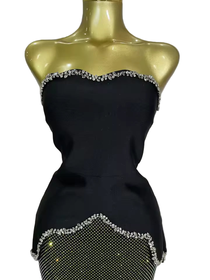 Make an unforgettable entrance with this Luxury Black Diamond Top & Skirt Two-Piece Party Dress. Designed to exude sophistication and glamour, it’s ideal for birthdays, upscale parties, or unforgettable club nights.