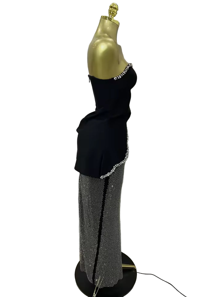 Step into the spotlight with this elegant black diamond party set, the ultimate outfit for creating a chic, high-fashion look at any special event.
