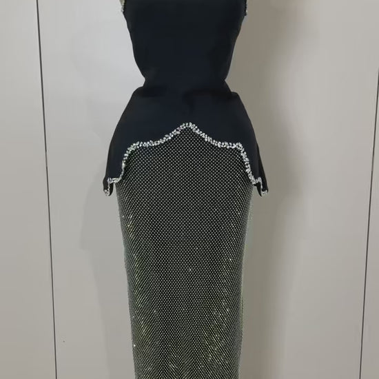 Luxury Black Diamond Top & Skirt Two-Piece Party Dress