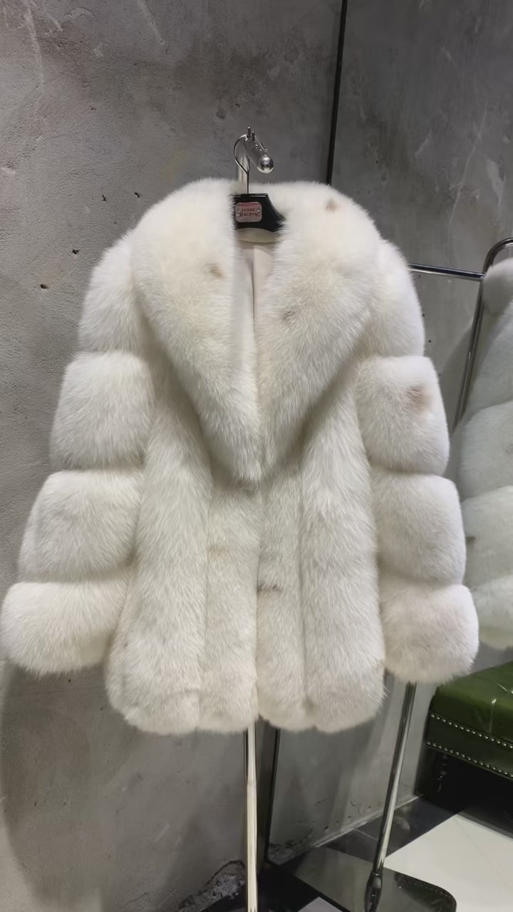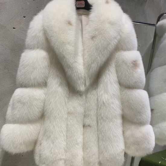Elevate your cold-weather wardrobe with this exquisite natural fox fur coat—a statement of style and luxury that keeps you warm in effortless elegance.