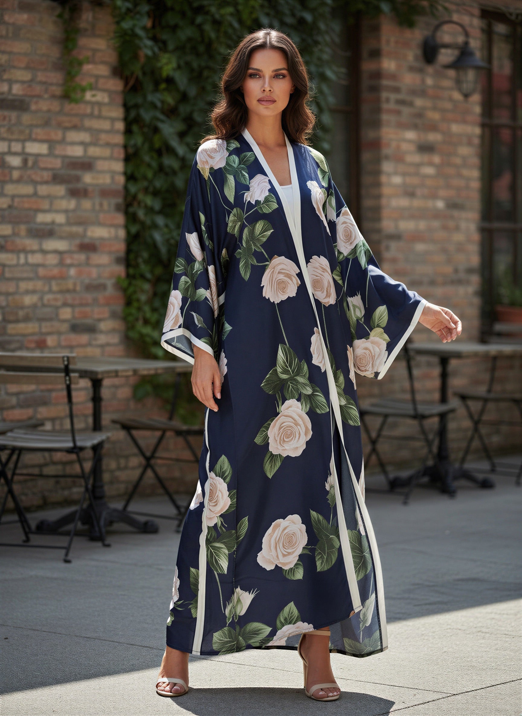 This printed silk abaya is crafted from lightweight, fluid silk and features a refined all-over print that adds subtle elegance to a timeless silhouette. Designed with a relaxed flowing cut, it drapes beautifully for effortless movement and lasting comfort. A versatile piece suitable for elegant gatherings and elevated everyday wear.