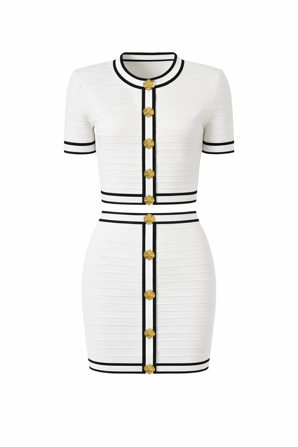 Elevate your wardrobe with this chic three-color knitted set featuring a delicate flower-knot design. The soft, elastic knit fabric offers a smooth and flattering fit, while the cropped cardigan and matching short skirt create a playful yet polished silhouette. Perfect for effortless styling, this set seamlessly combines comfort and modern fashion.