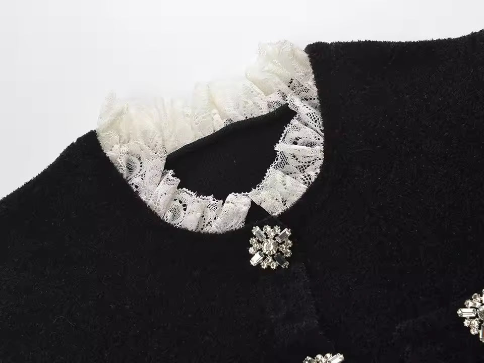 Add timeless sophistication to your style with this lace-detailed cardigan, perfect for casual outings, special dinners, or chic office wear.